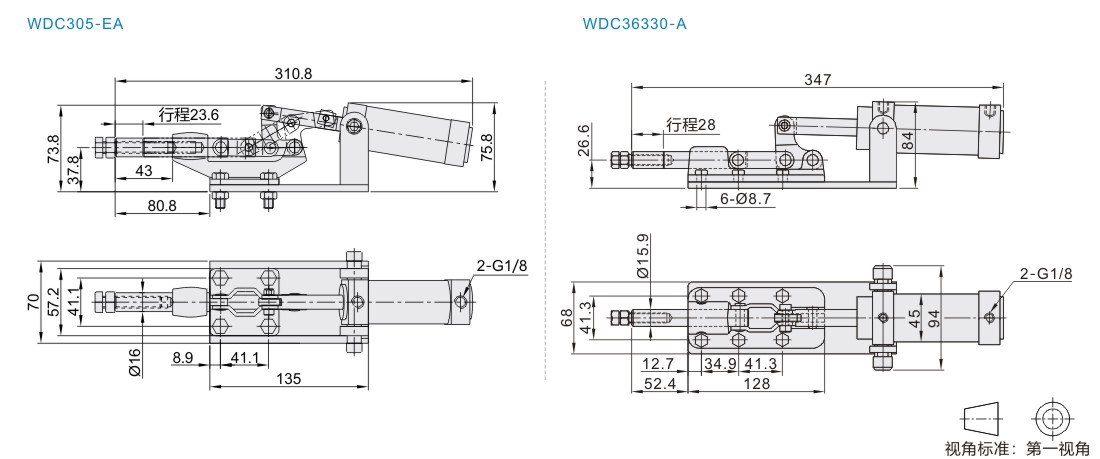 气动夹钳 外螺纹压把 推拉压紧式 法兰底座 夹持力386/1136kg