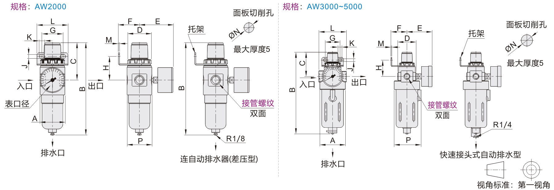AW2000 | 02(1/4) | A(手动排水) D(自动排水) |