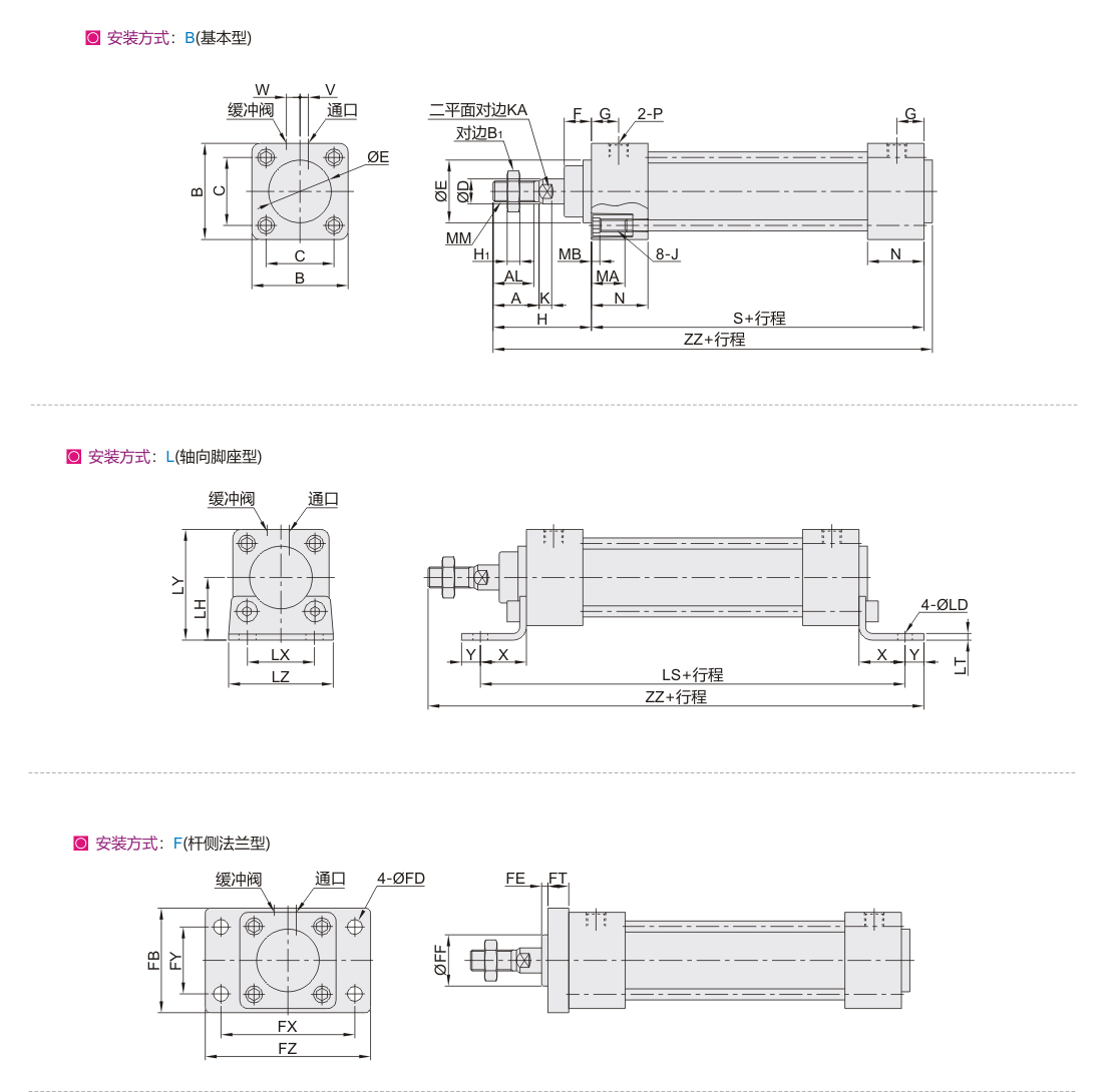 | 缸径 | FB | FD | FE | FT | FX | FY | FZ | FF | |||||||||||||||||||||||||||||||||||||||||