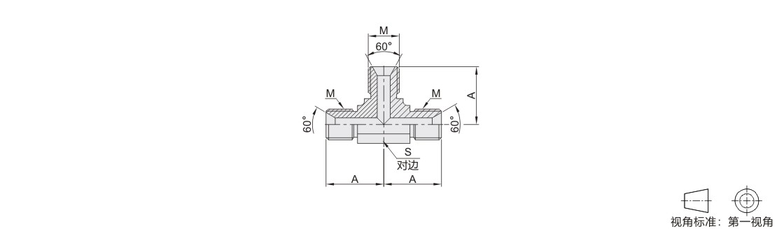 过渡接头 T型三通接头 碳钢/SUS304材质 英制BSP螺纹 外螺纹 60°锥面密封