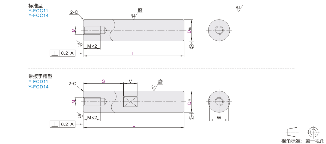 | (D公差f8) Y-FCC11 Y-FCC14 |