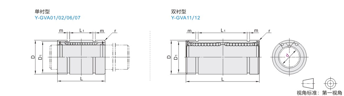 | Y-GVA11 | 双衬型 | GCr15 | SUJ2 | 56HRC~ | 无电解镀镍 | GCr15 | SUJ2 | 树脂 | 丁腈橡胶 | -15~80°C |