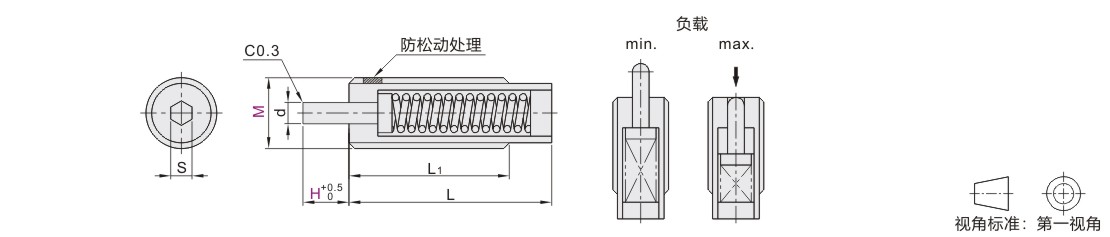 定位柱 长行程碳钢型 带防松型 内六角孔安装型 金属球头