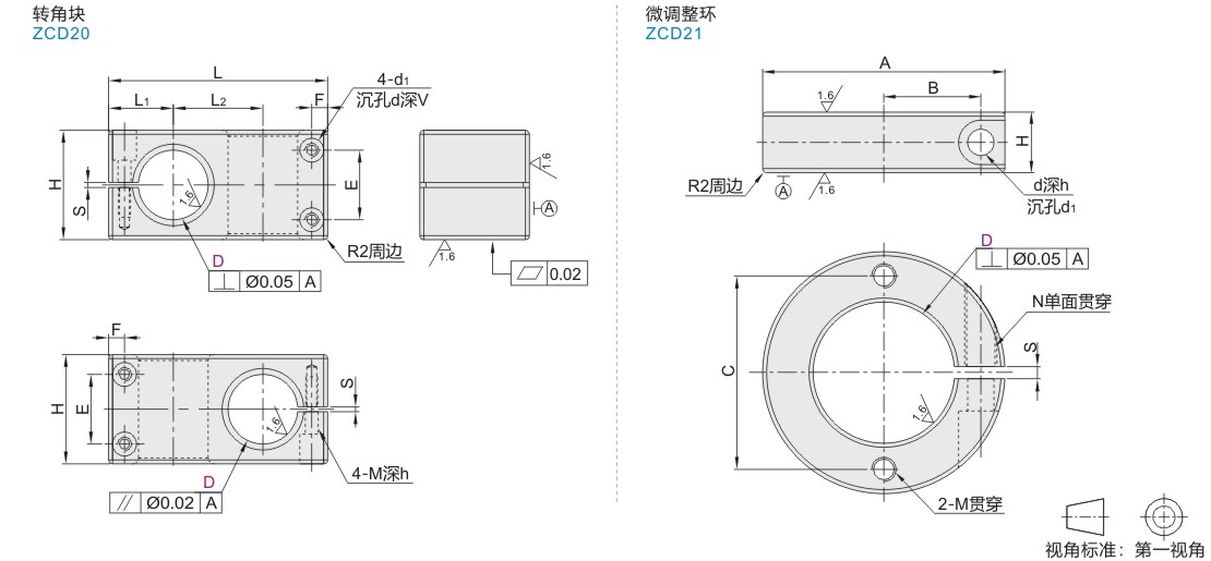 机构安装组件 转角块/微调整环 A6061材质 ZCD20-21系列
