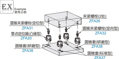 ● 无需定位的地方 ,请安装使用ZFA37圆锥套(标准型)。