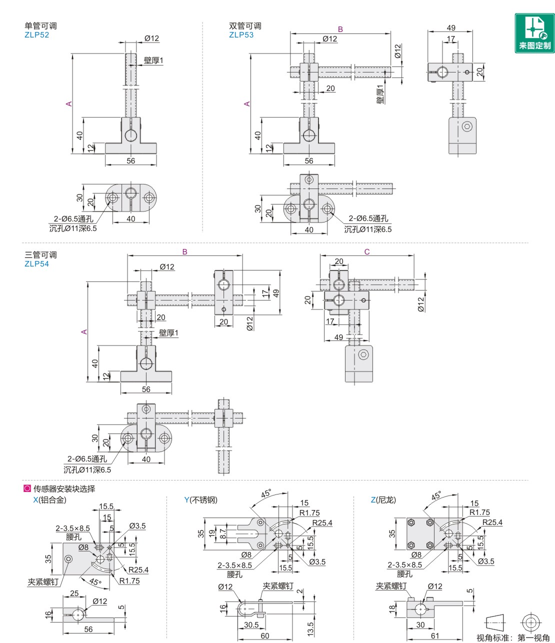 | ZLP54 | 三管可调 | ||||||