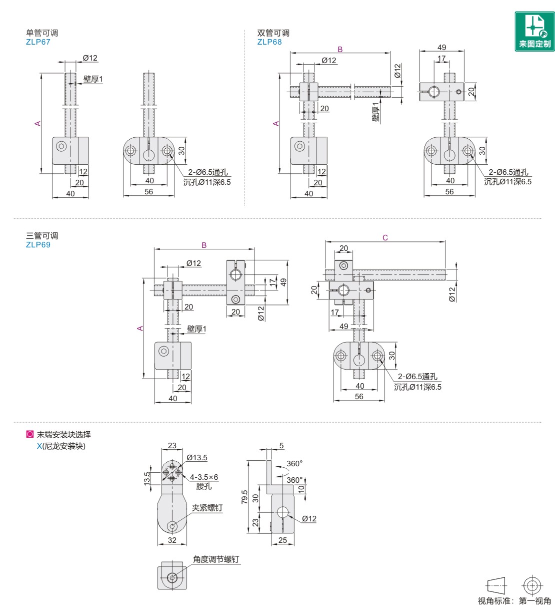 特点:所有连接块与空心管的连接均采用螺钉夹紧结构,可任意角度调节。