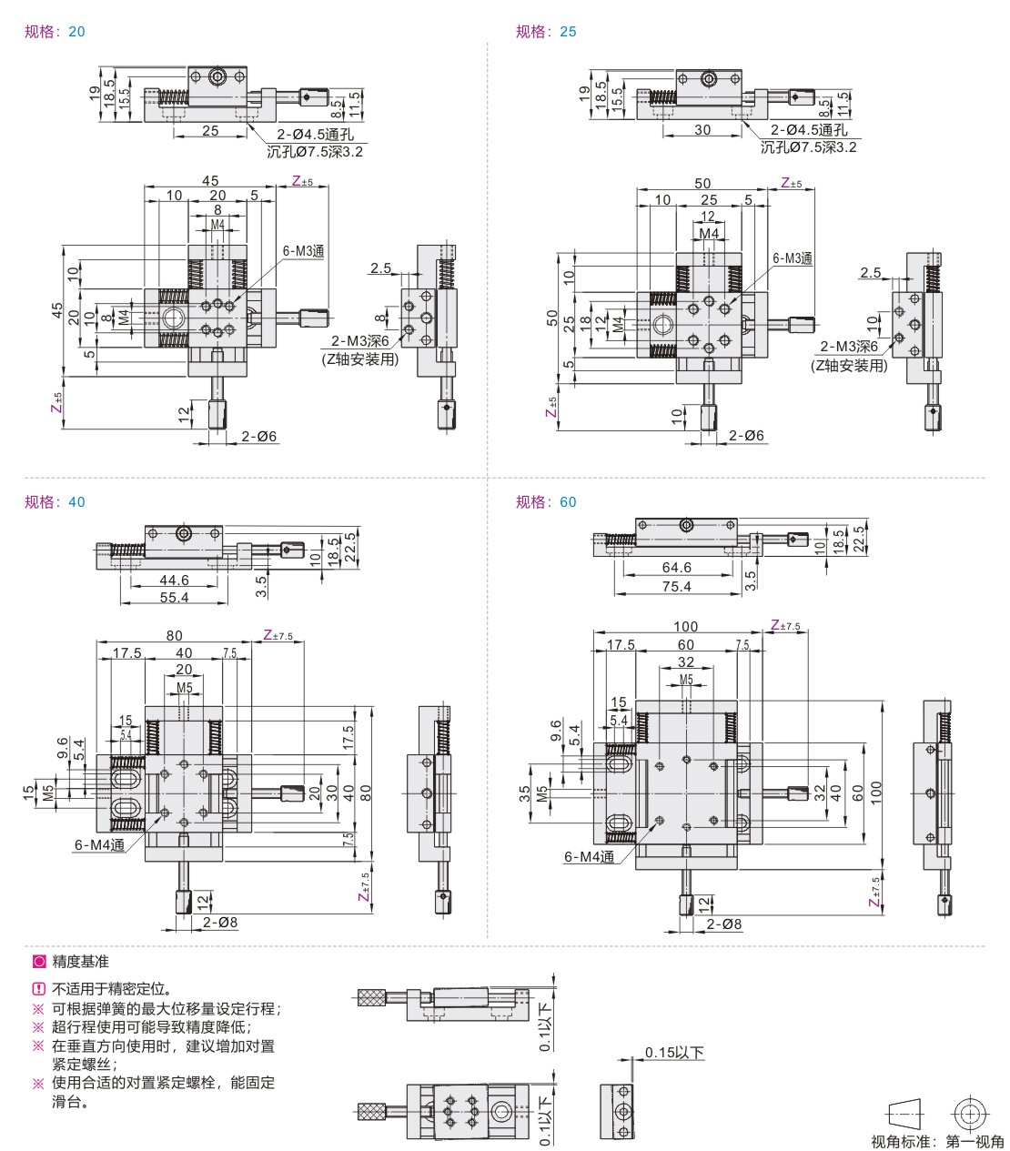 简易调整组件 XY轴 压紧丝杠型 标准型 无防尘盖板 A6063材质 黑色阳极氧化处理