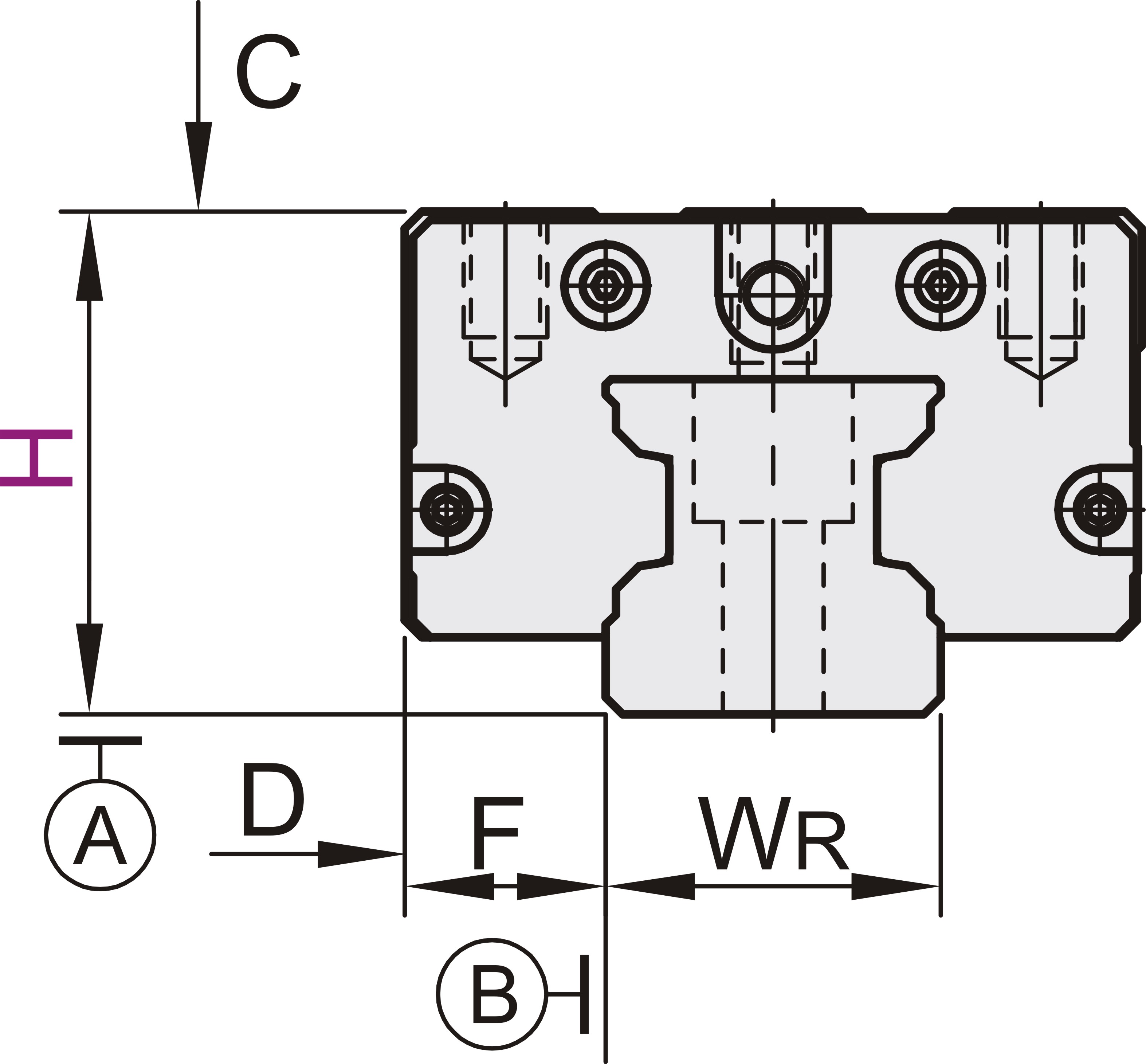 | 单滑块 | 高度H的容许尺寸误差 | ±0.04 | ±0.04 | ±0.04 | ±0.05 | ±0.05 | ±0.07 | 0 -0.04 |