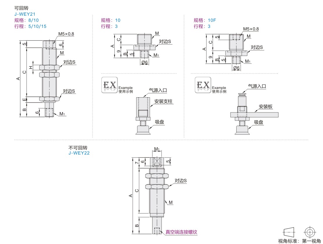 | J-WEY22 | 10 | 5 | B4(M4×0.7) | 不可回转 | M10×1.0 | M5×0.8 | 40 | 5 | 24.5 | 13 |