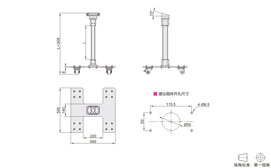 整套包含:悬臂接头、立柱、底板、脚轮。